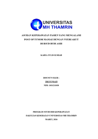 Tri, Yuniati (2024) ASUHAN KEPERAWATAN PASIEN YANG MENGALAMI POST OP TUMOR MAMAE DENGAN NYERI AKUT DI RSUD BUDI ASIH. Diploma thesis, Universitas Mohammad Husni Thamrin.