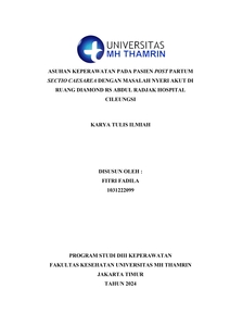 Fitri, Fadila (2024) ASUHAN KEPERAWATAN PADA PASIEN POST PARTUM SECTIO CAESAREA DENGAN MASALAH NYERI AKUT DI RUANG DIAMOND RS ABDUL RADJAK HOSPITAL CILEUNGSI. Diploma thesis, Universitas Mohammad Husni Thamrin.