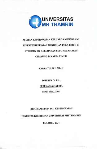 Febi Nafa, Zhafira (2024) ASUHAN KEPERAWATAN KELUARGA MENGALAMI HIPERTENSI DENGAN GANGGUAN POLA TIDUR DI RT 003/RW 002 KELURAHAN SETU KECAMATAN CIPAYUNG JAKARTA TIMUR. Diploma thesis, Universitas Mohammad Husni Thamrin.