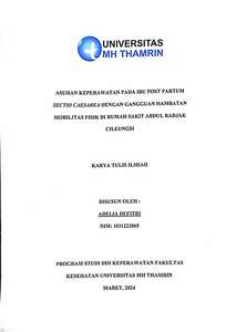 Adelia, Defitri (2024) ASUHAN KEPERAWATAN PADA IBU POST PARTUM SECTIO CAESAREA DENGAN GANGGUAN HAMBATAN MOBILITAS FISIK DI RUMAH SAKIT ABDUL RADJAK CILEUNGSI. Diploma thesis, Universitas Mohammad Husni Thamrin.