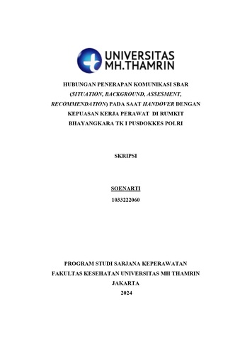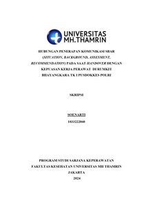 Soenarti, Soenarti (2024) Hubungan Penerapan Komunikasi SBAR (Situation, Background, Asesment, Recommendation) Saat Handdover Dengan Kepuasaan Perawat Di Rumkit Bhayangkara Tk I Pusdokes Polri. Other thesis, Universitas Mohammad Husni Thamrin.