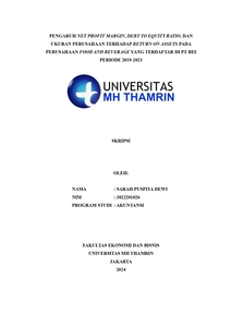 Sarah Puspita, Dewi (2024) PENGARUH NET PROFIT MARGIN, DEBT TO EQUITY RATIO, DAN UKURAN PERUSAHAAN TERHADAP RETURN ON ASSETS PADA PERUSAHAAN FOOD AND BEVERAGE YANG TERDAFTAR DI PT BEI PERIODE 2019-2023. Other thesis, Universitas Mohammad Husni Thamrin.