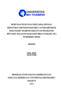 Nur, Afni (2024) HUBUNGAN DUKUNGAN KELUARGA DENGAN KEPATUHAN MENGONSUMSI OBAT ANTIDIABETIKUM PADA PASIEN DIABETES MELITUS DI POLIKLINIK PENYAKIT DALAM RUMAH SAKIT BHAYANGKARA TK I PUSDOKKES POLRI. Other thesis, Universitas Mohammad Husni Thamrin.