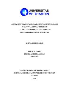 Fristy Amellia, Ardian (2024) ASUHAN KEPERAWATAN PADA PASIEN YANG MENGALAMI PNEUMONIA DENGAN BERSIHAN JALAN NAPAS TIDAK EFEKTIF DI RUANG EDELWEIS TIMUR RSUD BUDHI ASIH. Diploma thesis, Universitas Mohammad Husni Thamrin.