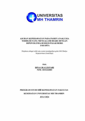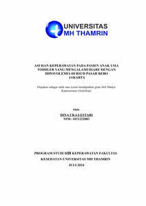 Dina Uka, Lestari (2024) ASUHAN KEPERAWATAN PADA PASIEN ANAK USIA TODDLER YANG MENGALAMI DIARE DENGAN HIPOVOLEMIA DI RSUD PASAR REBO JAKARTA. Diploma thesis, Universitas Mohammad Husni Thamrin.