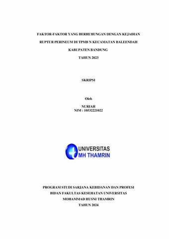 Nuriah, Nuriah (2024) FAKTOR-FAKTOR YANG BERHUBUNGAN DENGAN KEJADIAN RUPTUR PERINEUM DI TPMB N KECAMATAN BALEENDAH KABUPATEN BANDUNG TAHUN 2023. Other thesis, Universitas Mohammad Husni Thamrin.