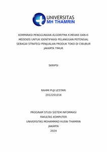 Rahmi Puji, Lestari (2024) KOMPARASI PENGGUNAAN ALGORITMA K-MEANS DAN K-MEDOIDS UNTUK IDENTIFIKASI PELANGGAN POTENSIAL SEBAGAI STRATEGI PENJUALAN PRODUK TOKO DI CIBUBUR JAKARTA TIMUR. Other thesis, Universitas Mohammad Husni Thamrin.