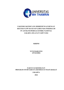 Yuni, Margono (2024) Faktor-Faktor yang Berhubungan dengan Keluhan Low Back Pain (LBP) pada Pekerja di PT Asuransi Perisai Listrik Nasional Jakarta Selatan Tahun 2024. Other thesis, Universitas Mohammad Husni Thamrin.