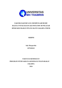 Saly, Margaretha (2024) FAKTOR-FAKTOR YANG MEMPENGARUHI IBU BALITA UNTUK DATANG KE POSYANDU DI WILAYAH RW 002 KELURAHAN PINANG RANTI JAKARTA TIMUR. Other thesis, Universitas Mohammad Husni Thamrin.