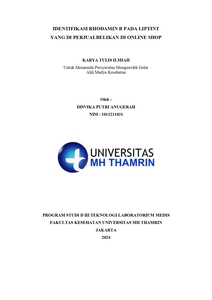 Disvika Putri, Anugerah (2024) IDENTIFIKASI RHODAMIN B PADA LIPTINT YANG DI PERJUALBELIKAN DI ONLINE SHOP. Diploma thesis, Universitas Mohammad Husni Thamrin.