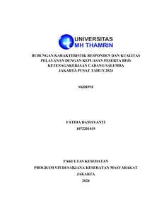 Fathia, Damayanti (2024) HUBUNGAN KARAKTERISTIK RESPONDEN DAN KUALITAS PELAYANAN DENGAN KEPUASAN PESERTA BPJS KETENAGAKERJAAN CABANG SALEMBA JAKARTA PUSAT TAHUN 2024. Other thesis, Universitas Mohammad Husni Thamrin.