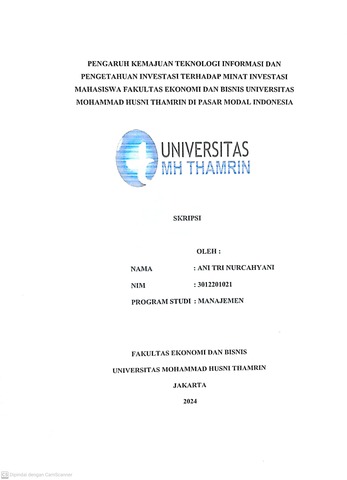 Ani Tri, Nurcahyani (2024) PENGARUH KEMAJUAN TEKNOLOGI INFORMASI DAN PENGETAHUAN INVESTASI TERHADAP MINAT INVESTASI MAHASISWA FAKULTAS EKONOMI DAN BISNIS UNIVERSITAS MOHAMMAD HUSNI THAMRIN DI PASAR MODAL INDONESIA. Other thesis, Universitas Mohammad Husni Thamrin.