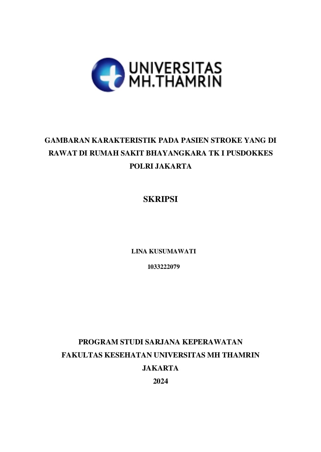 Lina, Kusumawati (2024) GAMBARAN KARAKTERISTIK PADA PASIEN STROKE YANG DI RAWAT DI RUMAH SAKIT BHAYANGKARA TK I PUSDOKKES POLRI JAKARTA. Other thesis, Universitas Mohammad Husni Thamrin.
