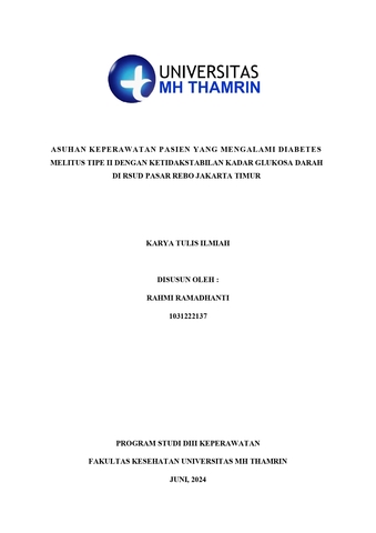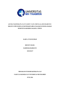 Rahmi, Ramadhanti (2024) ASUHAN KEPERAWATAN PASIEN YANG MENGALAMI DIABETES MELITUS TIPE II DENGAN KETIDAKSTABILAN KADAR GLUKOSA DARAH DI RSUD PASAR REBO JAKARTA TIMUR. Diploma thesis, Universitas Mohammad Husni Thamrin.