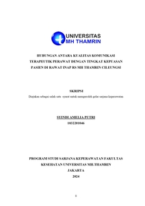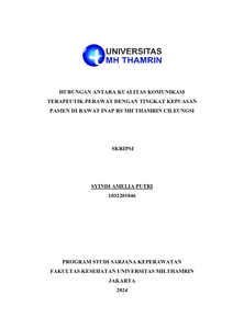 Syindi Amelia, Putri (2024) HUBUNGAN ANTARA KUALITAS KOMUNIKASI TERAPEUTIK PERAWAT DENGAN TINGKAT KEPUASAN PASIEN DI RAWAT INAP RS MH THAMRIN CILEUNGSI. Other thesis, Universitas Mohammad Husni Thamrin.