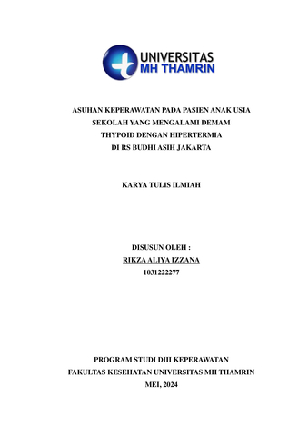 Rikza Aliya, Izzana (2024) ASUHAN KEPERAWATAN PADA PASIEN ANAK USIA SEKOLAH YANG MENGALAMI DEMAM THYPOID DENGAN HIPERTERMIA DI RS BUDHI ASIH JAKARTA. Diploma thesis, Universitas Mohammad Husni Thamrin.
