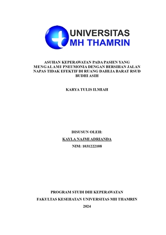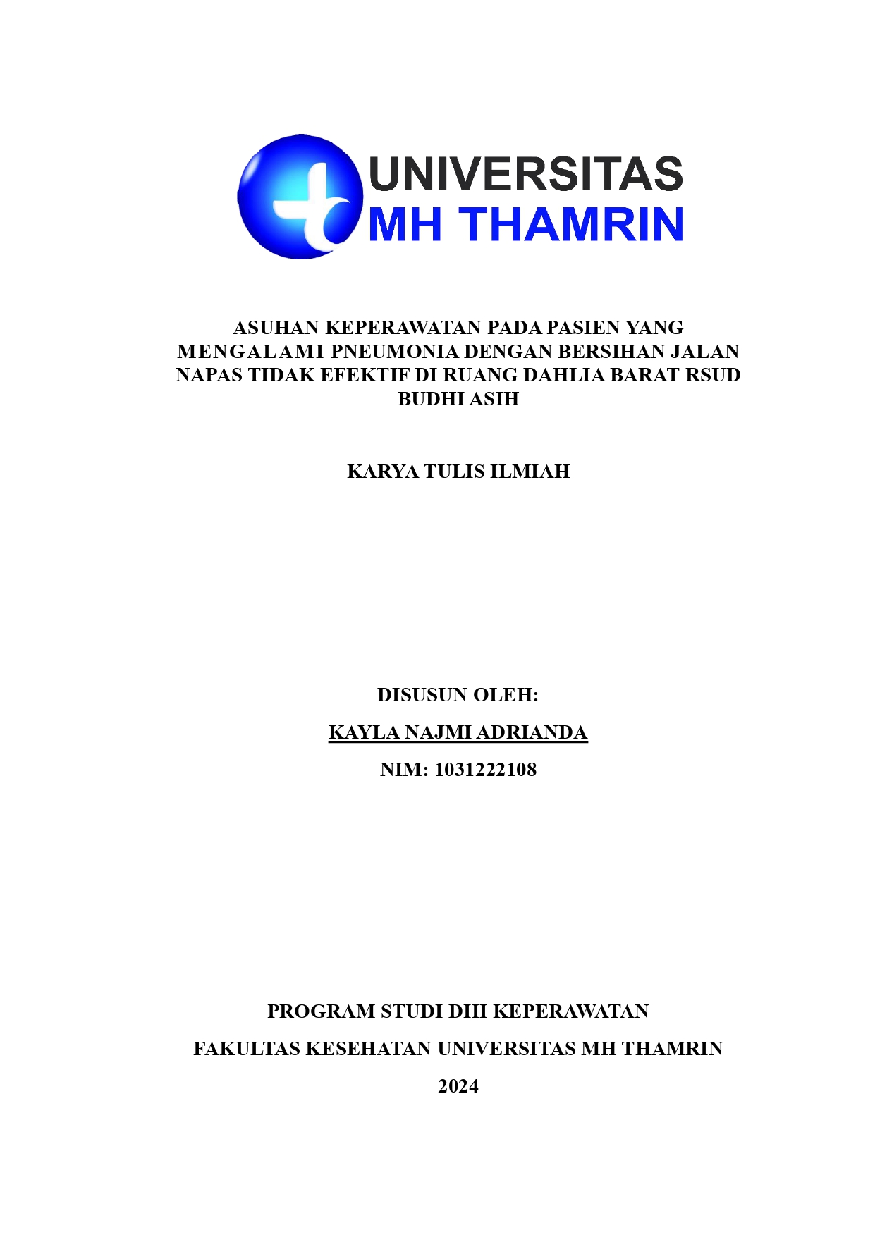 Kayla Najmi, Adrianda (2024) Asuhan Keperawatan pada Pasien yang Mengalami Pneumonia dengan Bersihan Jalan Napas Tidak Efektif di Ruang Dahlia Barat RSUD Budhi Asih. Diploma thesis, Universitas Mohammad Husni Thamrin.