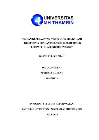 Putri Sri, Fadilah (2024) Asuhan Keperawatan Pasien yang Mengalami Skizofrenia dengan Isolasi Sosial di Ruang Edelweis Dua Duren Sawit. Diploma thesis, Universitas Mohammad Husni Thamrin.