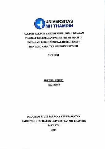 Sri, Widiastuti (2024) Faktor-Faktor Yang Berhubungan Dengan Tingkat Kecemasan Pasien Pre Operasi Di Instalasi Bedah Sental RS Bhayangkara Tk I Pusdokkes Polri. Other thesis, Universitas Mohammad Husni Thamrin.