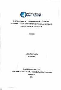Azra, Maulana (2024) FAKTOR-FAKTOR YANG BERHUBUNGAN DENGAN PERILAKU SAFETY RIDING PADA SISWA KELAS XII MAN 6 JAKARTA TIMUR TAHUN 2024. Other thesis, Universitas Mohammad Husni Thamrin.