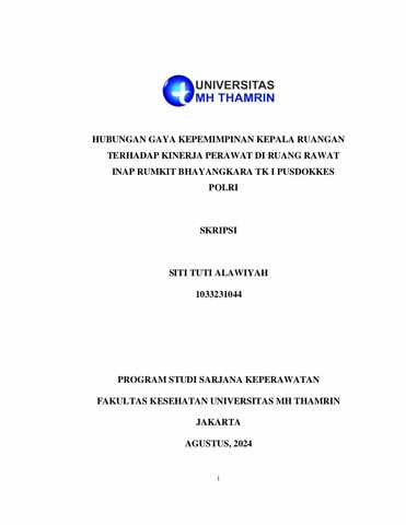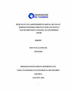SITI TUTI, ALAWIYAH (2024) HUBUNGAN GAYA KEPEMIMPINAN KEPALA RUANGAN TERHADAP KINERJA PERAWAT DI RUANG RAWAT INAP RUMKIT BHAYANGKARA TK I PUSDOKKES POLRI. Other thesis, Universitas Mohammad Husni Thamrin.