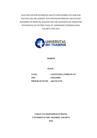 Agesti Rina, Indrawati (2024) ANALISIS SISTEM INFORMASI AKUNTANSI PEMBELIAN BARANG DAGANG SECARA KREDIT DAN SISTEM INFORMASI AKUNTANSI PENERIMAAN BARANG DAGANG SECARA KONSINYASI TERHADAP PENGENDALIAN INTERN PADA PT. INDOMARCO PRISMATAMA JAKARTA 2022-2023. Other thesis, Universitas Mohammad Husni Thamrin.
