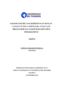 Veryssa, Maharani Widjaya (2024) FAKTOR-FAKTOR YANG BERHUBUNGAN DENGAN GANGGUAN POLA TIDUR PADA ANAK YANG DIRAWAT DI RUANG ANAK RUMAH SAKIT UMUM PINDAD BANDUNG. Other thesis, Universitas Mohammad Husni Thamrin.