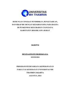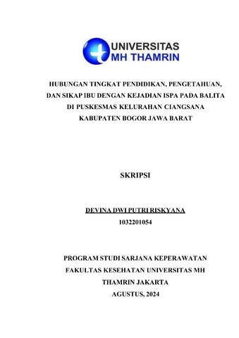 Devina, Dwi Putri Riskyana (2024) HUBUNGAN TINGKAT PENDIDIKAN, PENGETAHUAN, DAN SIKAP IBU DENGAN KEJADIAN ISPA PADA BALITA DI PUSKESMAS KELURAHAN CIANGSANA KABUPATEN BOGOR JAWA BARAT. Other thesis, Universitas Mohammad Husni Thamrin.