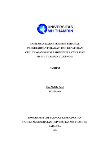 Liza Nabila, Putri (2024) Gambaran Karakteristik Perawat, Pengetahuan Perawat, Dan Kepatuhan Cuci Tangan Sesuai 5 Momen Di Rawat Inap RS MH Thamrin Cileungsi. Diploma thesis, Universitas Mohammad Husni Thamrin.
