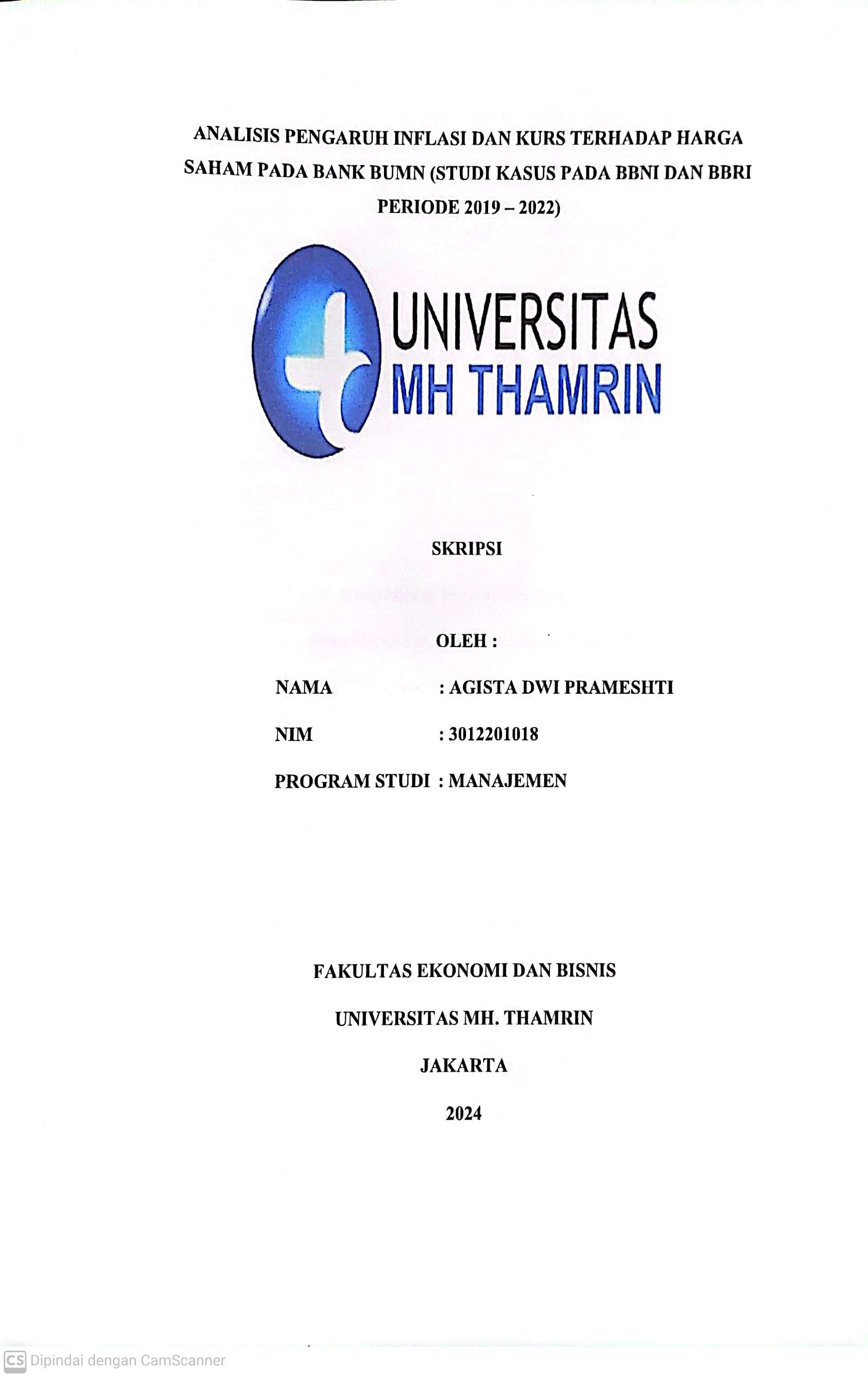 Agista Dwi, Prameshti (2024) Analisis Pengaruh Inflasi Dan Kurs Terhadap Harga Saham Pada Bank Bumn (Studi Kasus Pada BBNI Dan BBRI Periode 2019 – 2022). Other thesis, Universitas Mohammad Husni Thamrin.