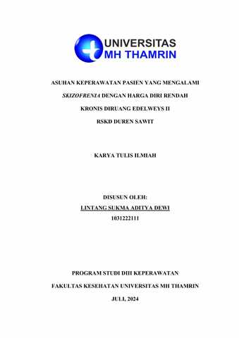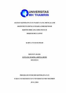Lintang, Sukma Aditya Dewi (2024) ASUHAN KEPERAWATAN PASIEN YANG MENGALAMI SKIZOFRENIA DENGAN HARGA DIRI RENDAH KRONIS DIRUANG EDELWEYS II RSKD DUREN SAWIT. Diploma thesis, Universitas Mohammad Husni Thamrin.