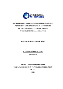Danisha Rizkia, Ananda (2024) ASUHAN KEPERAWATAN LANSIA HIPERTENSI DENGAN NYERI AKUT MELALUI TINDAKAN SLOW STROKE BACK MASSAGE DI PANTI SOSIAL TRESNA WERDHA BUDI MULIA 1 CIPAYUNG. Other thesis, Universitas Mohammad Husni Thamrin.