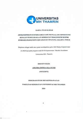 Amanda Rizkia, Eka Putri (2024) Asuhan Keperawatan Keluarga yang Mengalami Hipertensi dengan Pemeliharaan Kesehatan Tidak Efektif di RT:003 RW:002 Kelurahan Setu Kecamatan Cipayung Jakarta Timur. Diploma thesis, Universitas Mohammad Husni Thamrin.