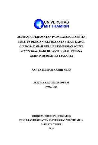 Febiyana Agung, Trimurti (2024) ASUHAN KEPERAWATAN PADA LANSIA DIABETES MELITUS DENGAN KETIDAKSTABILAN KADAR GLUKOSA DARAH MELALUI PEMBERIAN ACTIVE STRETCHING KAKI DI PANTI SOSIAL TRESNA WERDHA BUDI MULIA 1 JAKARTA. Other thesis, Universitas Mohammad Husni Thamrin.