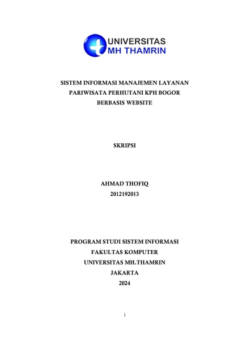 Ahmad, Thofiq (2024) SISTEM INFORMASI MANAJEMEN LAYANAN PARIWISATA PERHUTANI KPH BOGOR BERBASIS WEBSITE. Other thesis, Universitas Mohammad Husni Thamrin.