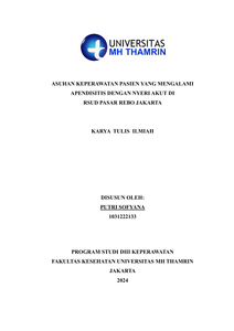 Sofyana, Putri (2024) ASUHAN KEPERAWATAN PASIEN YANG MENGALAMI APENDISITIS DENGAN NYERI AKUT DI RSUD PASAR REBO JAKARTA. Diploma thesis, Universitas Mohammad Husni Thamrin.