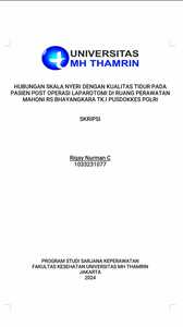 Riqsy, Nurman C (2024) HUBUNGAN SKALA NYERI DENGAN KUALITAS TIDUR PADA PASIEN POST OPERASI LAPAROTOMI DI RUANG PERAWATAN MAHONI RS BHAYANGKARA TK.I PUSDOKKES POLRI. Other thesis, Universitas Mohammad Husni Thamrin.