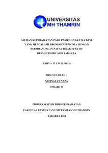 Safinatan, Naza (2024) ASUHAN KEPERAWATAN PADA PASIEN ANAK USIA BAYI YANG MENGALAMI BRONKOPNEUMONIA DENGAN BERSIHAN JALAN NAFAS TIDAK EFEKTIF DI RSUD BUDHI ASIH JAKARTA. Diploma thesis, Universitas Mohammad Husni Thamrin.