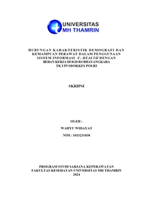 Wahyu, Widayat (2024) HUBUNGAN KARAKTERISTIK DEMOGRAFI DAN KEMAMPUAN PERAWAT DALAM PENGGUNAAN SISTEM INFORMASI E- HEALTH DENGAN BEBAN KERJA DI IGD RS BHAYANGKARA TK I PUSDOKKES POLRI. Other thesis, Universitas Mohammad Husni Thamrin.