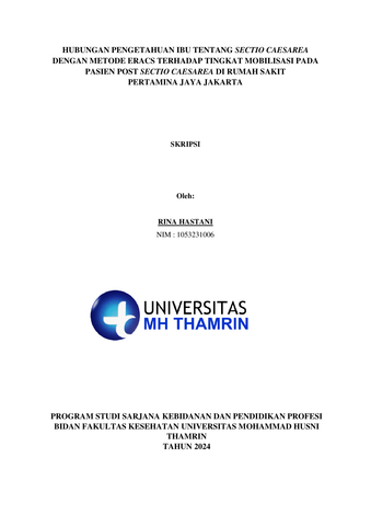 Rina, Hastani (2024) HUBUNGAN PENGETAHUAN IBU TENTANG SECTIO CAESAREA DENGAN METODE ERACS TERHADAP TINGKAT MOBILISASI PADA PASIEN POST SECTIO CAESAREA DI RUMAH SAKIT PERTAMINA JAYA JAKARTA. Other thesis, Universitas Mohammad Husni Thamrin.