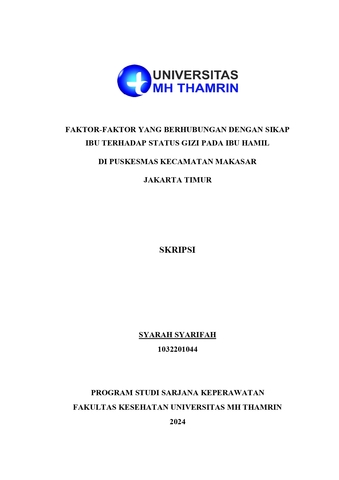 Syarah, Syarifah (2024) Faktor-Faktor Yang Berhubungan Dengan Sikap Ibu Terhadap Status Gizi Pada Ibu Hamil Di Puskesmas Kecamatan Makasar Jakarta Timur. Other thesis, Universitas Mohammad Husni Thamrin.