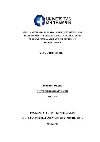 Resti Fitria, Devitasari (2024) ASUHAN KEPERAWATAN PADA PASIEN YANG MENGALAMI DIABETES MELITUS DENGAN GANGGUAN CITRA TUBUH DI RUANG CEMPAKA BARAT RSUD BUDHI ASIH JAKARTA TIMUR. Diploma thesis, Universitas Mohammad Husni Thamrin.