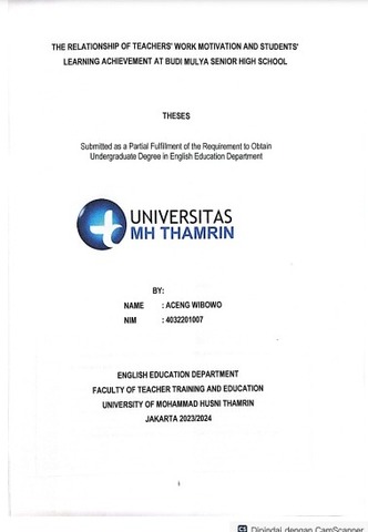 ACENG, WIBOWO (2024) THE RELATIONSHIP OF TEACHERS' WORK MOTIVATION AND STUDENTS' LEARNING ACHIEVEMENT AT BUDI MULYA SENIOR HIGH SCHOOL. Other thesis, Universitas Mohammad Husni Thamrin.