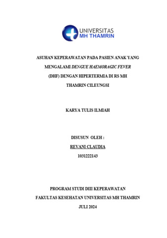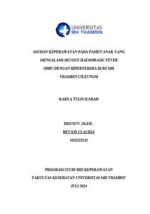 Revani, Claudia (2024) ASUHAN KEPERAWATAN PADA PASIEN ANAK YANG MENGALAMI DENGUE HAEMORAGIC FEVER (DHF) DENGAN HIPERTERMIA DI RS MH THAMRIN CILEUNGSI. Diploma thesis, Universitas Mohammad Husni Thamrin.
