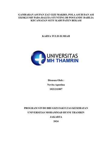 Novita, Agustina (2024) Gambaran Asupan Zat Gizi Makro, Pola Asuh dan ASI Eksklusif pada Balita Stunting di Posyandu Dahlia Kecamatan Setu Kabupaten Bekasi. Diploma thesis, Universitas Mohammad Husni Thamrin.