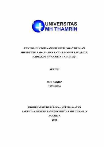 Asri, Sagira (2024) Faktor-Faktor yang Berhubungan Dengan Hipertensi pada Pasien Rawat Inap di RSU Abdul Radjak Purwakarta Tahun 2024. Other thesis, Universitas Mohammad Husni Thamrin.