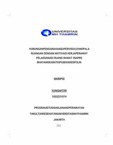 Yuni, Safitri (2024) Hubungan Pengarahan Supervisi Oleh Kepala Ruangan Dengan Motivasi Kerja Perawat Pelaksana Di Ruang Rawat Inap RS Bhayangkara TK I Pusdokkes Polri. Other thesis, Universitas Mohammad Husni Thamrin.