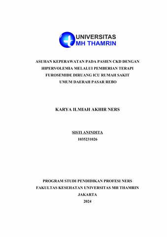 Sisti Anindita, Cantik (2024) ASUHAN KEPERAWATAN PADA PASIEN CKD DENGAN HIPERVOLEMIA MELALUI PEMBERIAN TERAPI FUROSEMIDE DIRUANG ICU RUMAH SAKIT UMUM DAERAH PASAR REBO. Other thesis, Universitas Mohammad Husni Thamrin.