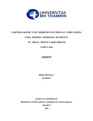 Rizki, Septiana (2024) FAKTOR-FAKTOR YANG BERHUBUNGAN DENGAN STRES KERJA PADA PEKERJA PRODUKSI MACHINING PT. BRAJA MUKTI CAKRA BEKASI TAHUN 2024. Other thesis, Universitas Mohammad Husni Thamrin.