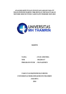 Fuzi, Amethia (2024) ANALISIS KEPUTUSAN INVESTASI SAHAM PADA PT TRANS POWER MARINE TBK DENGAN MENGGUNAKAN METODE DISCOUNTED CASH FLOW PERIODE 2019-2023. Other thesis, Universitas Mohammad Husni Thamrin.